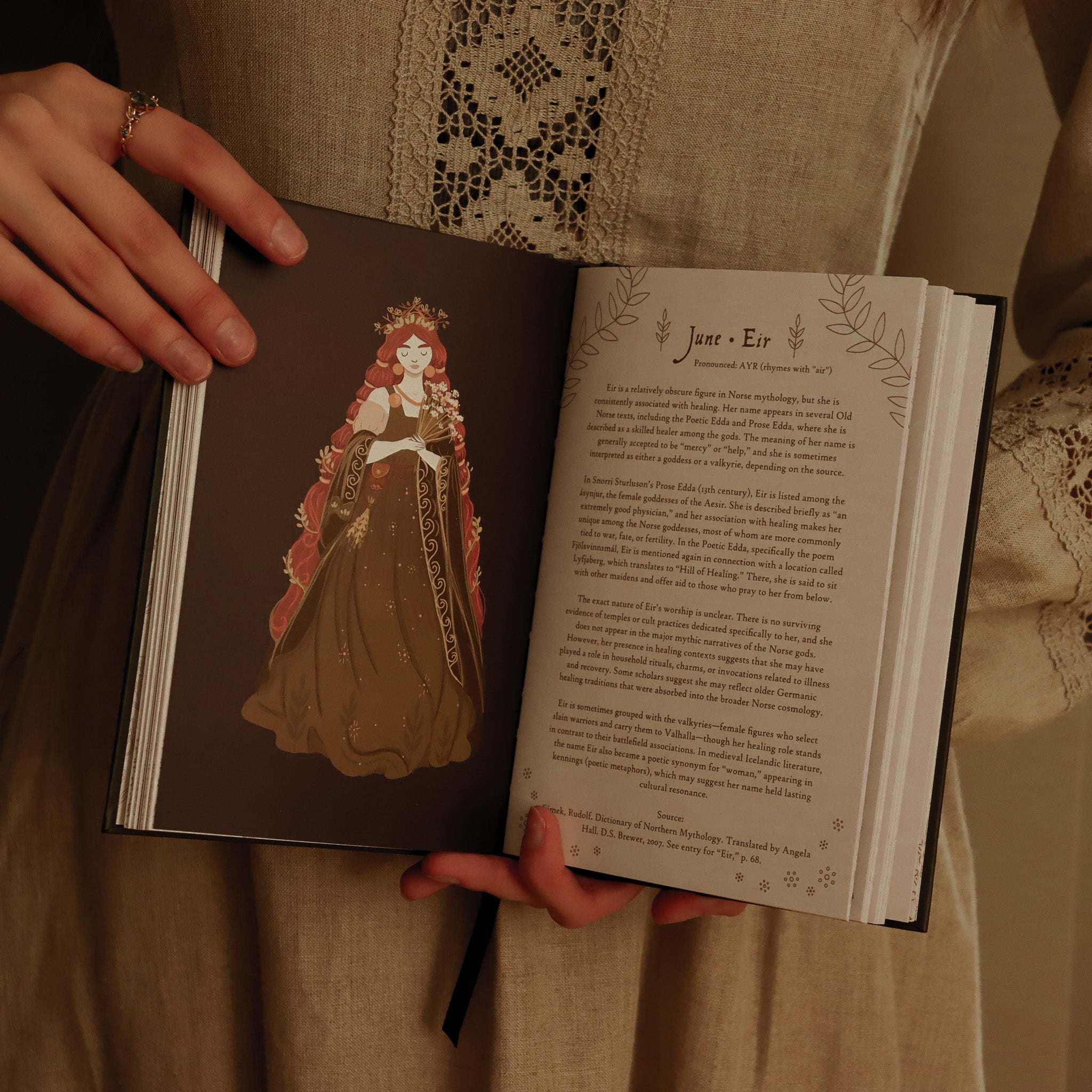 Each month features a female deity from mythology, paired with an illustration. My hope is that these pages help you learn something new to share with friends and family!